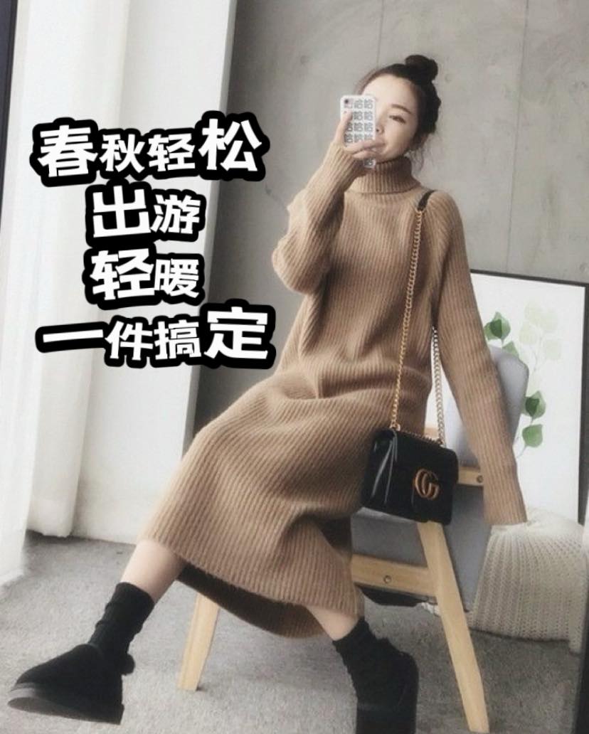 初春旅游凉凉的,一件式高领毛衣裙,轻松搞定,造型满分🩷