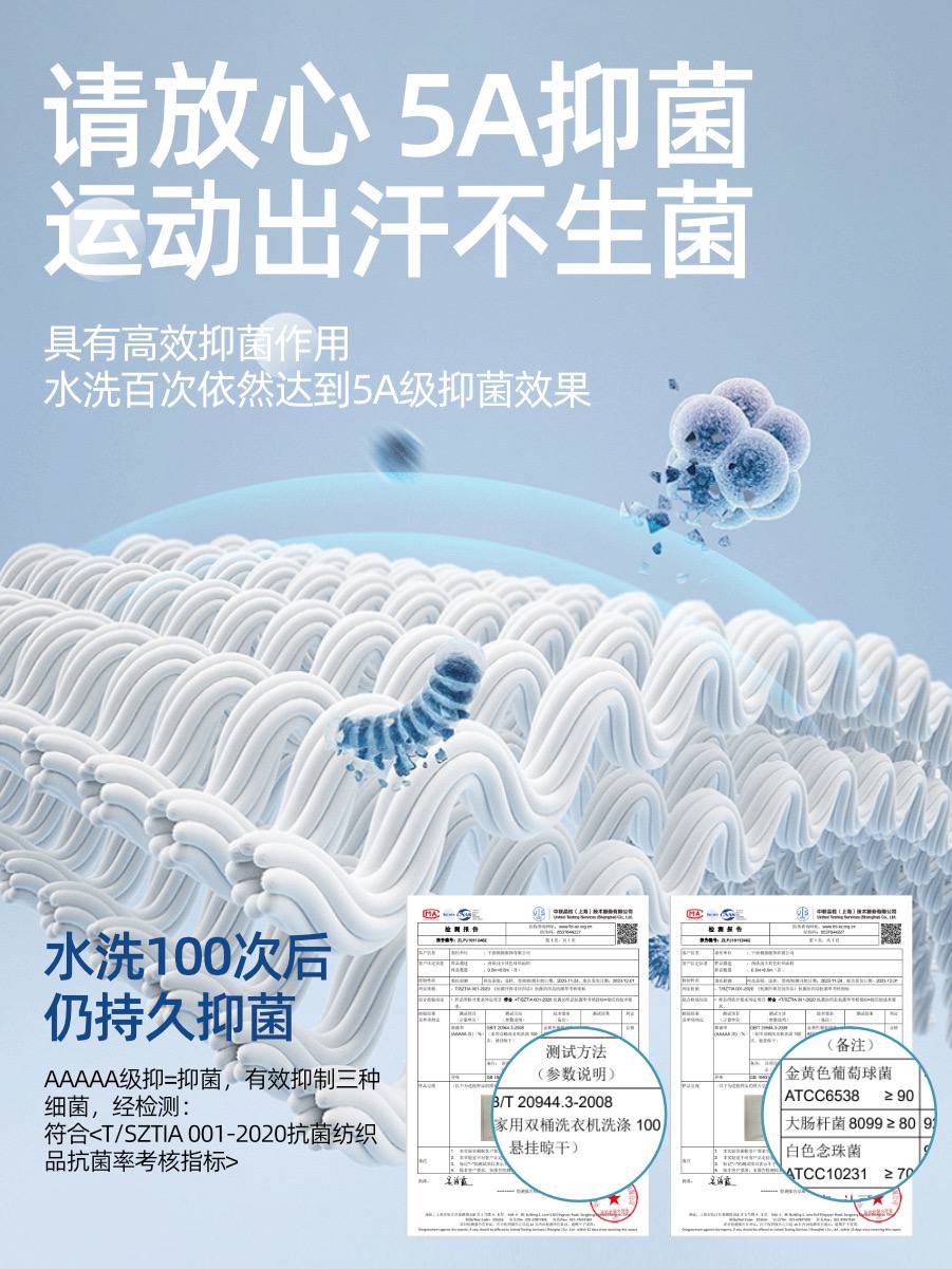 💕 具有高效抑菌作用,水洗百次依然达到5A级抑菌效果