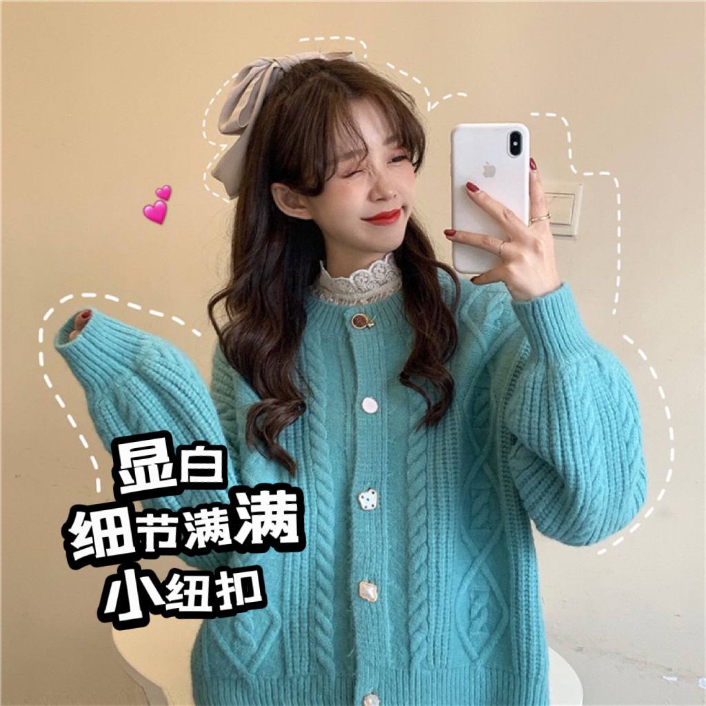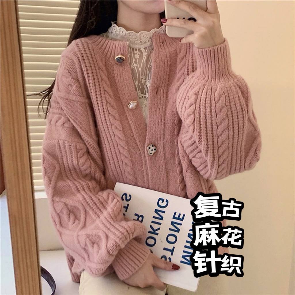 #复古麻花针织外套,搭配 #少女感的灯笼袖🥰 #还有每一颗不一样设计的纽扣 设计感气质拉满‼舒适出游🥰