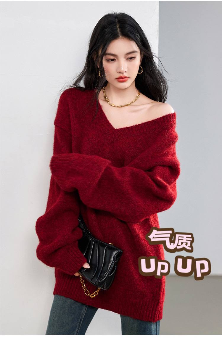 #节日假期mood来一件红色毛衣‼ 显瘦版型气质up up‼