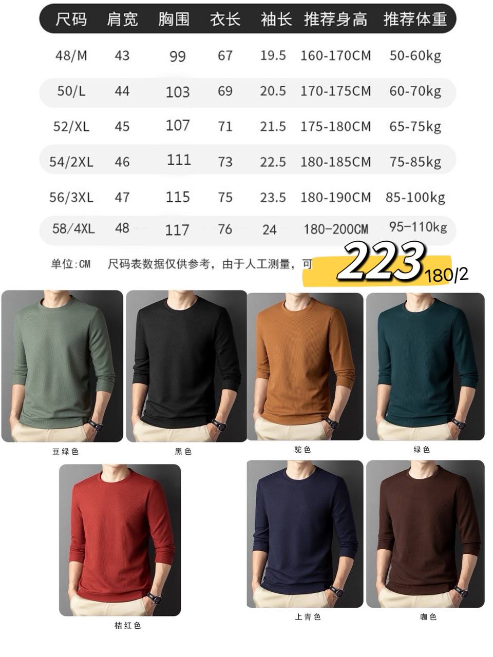 桔红 RED, 绿 DARK GREEN, 藏青 NAVY, 豆绿色 GREEN, 驼色 KHAKI, 黑 BLACK